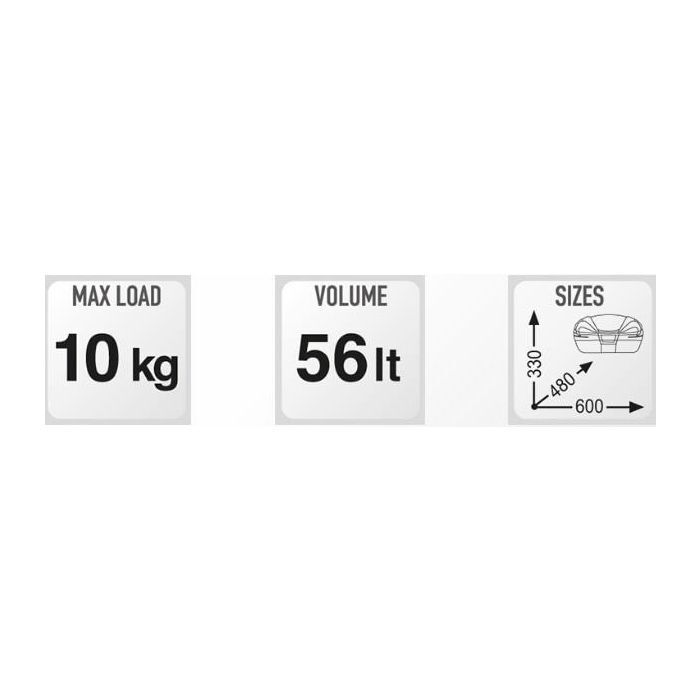 With its huge capacity, this fourth-generation MAXIA top box will easily hold 2 flip-up full-face helmets. The new V56 has a striking modern design, complete with aluminium trim and innovative features. The hard case can be opened with one hand thanks to the special Monokey system.